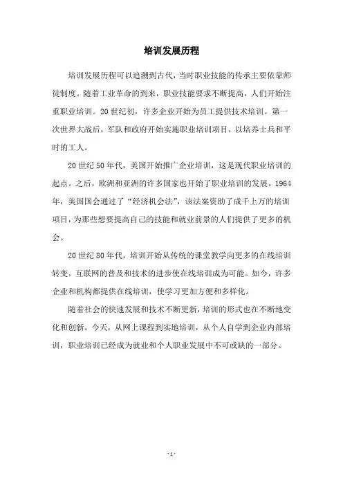国外培训的发展历程国外培训的发展历程可以追溯到20世纪初。