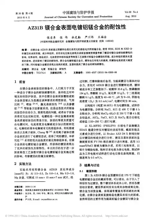 然而,电镀镀层尚不能保障镁在海水或者盐雾环境下安全使用,因此就限制了镁在汽车,航空,航海等领域中的应用[1]。