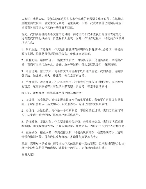 大家好!今天,我站在这里,非常荣幸能够与大家分享关于高考作文的一些心得和感悟。