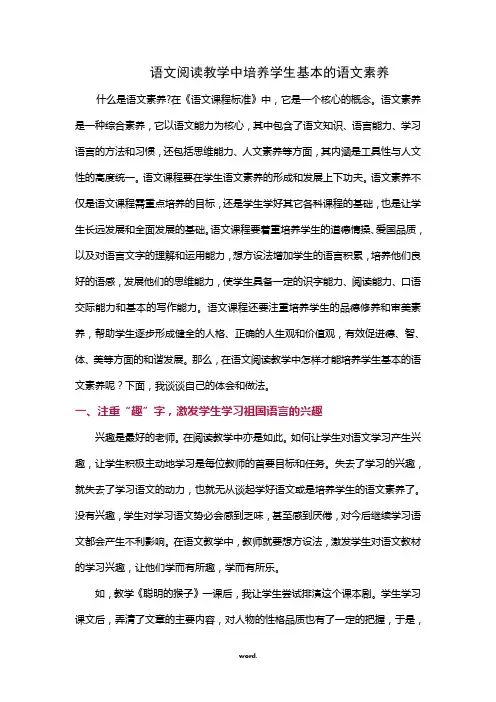 在阅读教学中培养学生良好的口语表达能力,也是培养学生基本语文素养的一个重要方面。