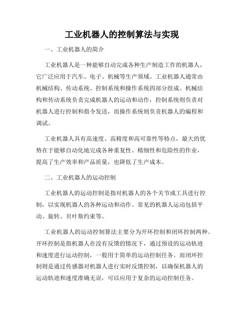 「工业机器人的控制策略探讨2」工业机器人的控制策略是指控制机器人运动和操作的方法和技术。
