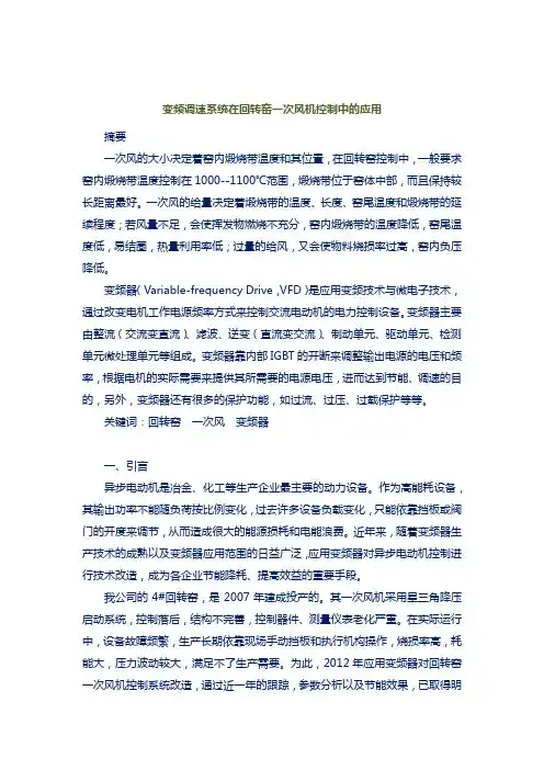 关键词:回转窑一次风变频器一、引言异步电动机是冶金、化工等生产企业最主要的动力设备。
