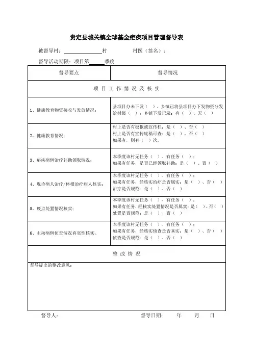 贵定县城关镇全球基金疟疾项目管理督导表被督导村:村村医(签名):