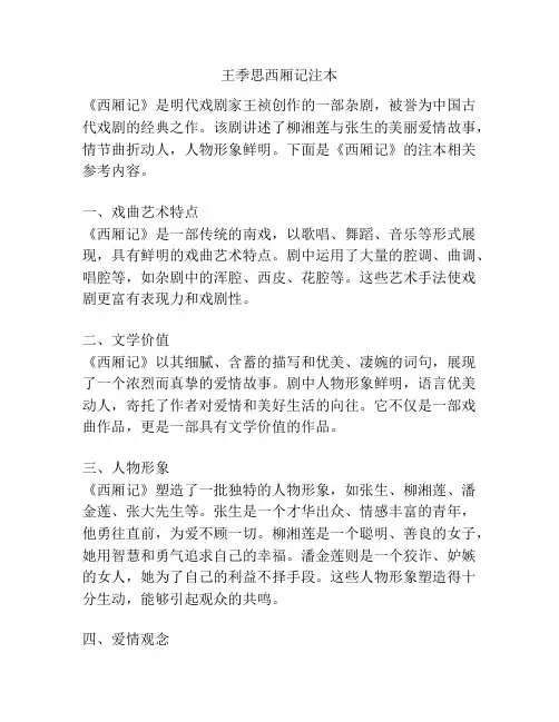 王季思西厢记注本《西厢记》是明代戏剧家王祯创作的一部杂剧,被誉为中国古代戏剧的经典之作。