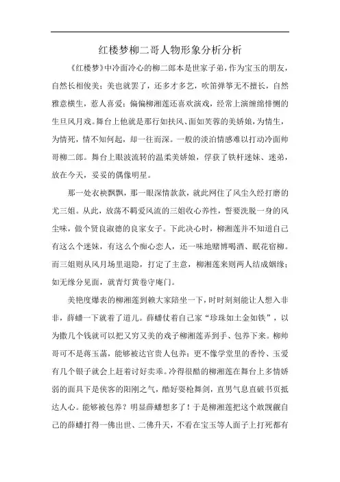 红楼梦柳二哥人物形象分析分析