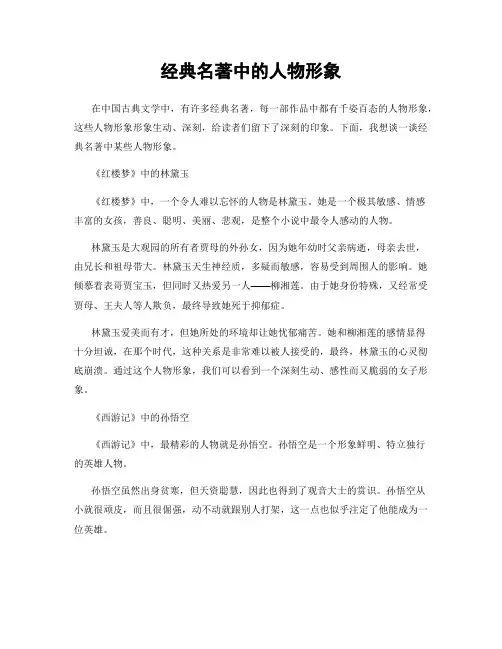经典名著中的人物形象在中国古典文学中,有许多经典名著,每一部作品中都有千姿百态的人物形象,这些人物形象形象生动、深刻,给读者们留下了深刻的印象。