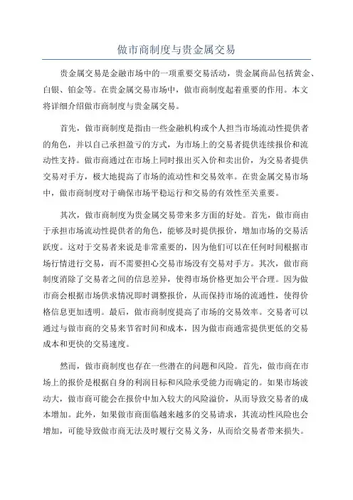 做市商制度与贵金属交易贵金属交易是金融市场中的一项重要交易活动,贵金属商品包括黄金、白银、铂金等。