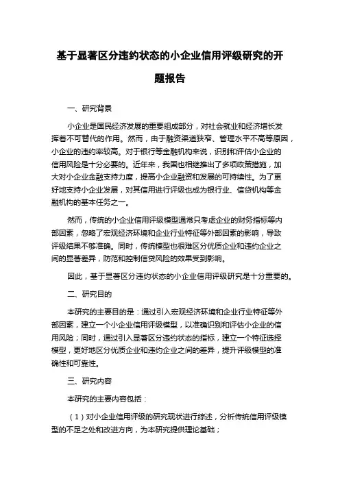 基于显著区分违约状态的小企业信用评级研究的开题报告一、研究背景小企业是国民经济发展的重要组成部分,对社会就业和经济增长发挥着不可替代的作用。