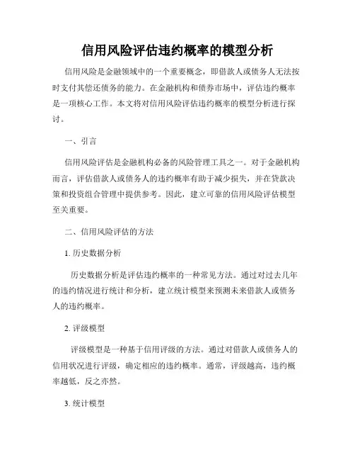 二、信用风险评估的方法1. 历史数据分析历史数据分析是评估违约概率的一种常见方法。