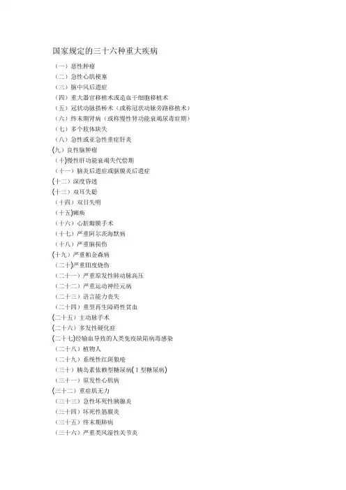 国家规定的三十六种重大疾病在现代社会中,疾病给人们的健康和生活带来了严重的威胁。