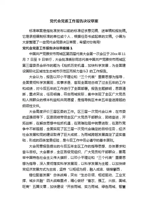 一、要认真做好大会的文件工作做好大会的文件工作,特别是起草好县(市、区)委的工作报告,是大会的首要工作,也是开好党代会的重要标志之一。
