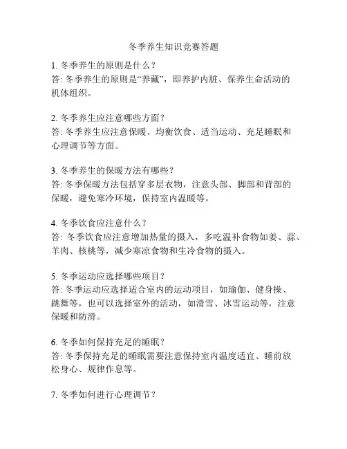 冬季养生知识竞赛题库及答案