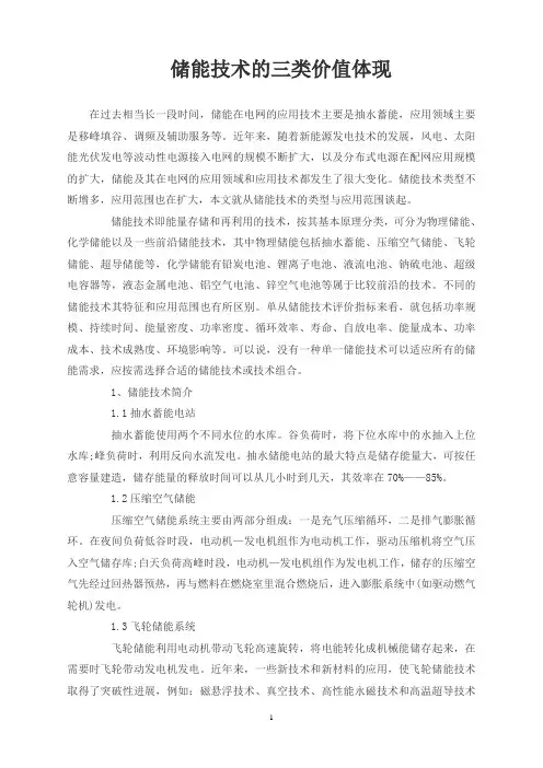 (四)物化储能物化储能是指通过将能量储存到化学物质中来实现能量储存。