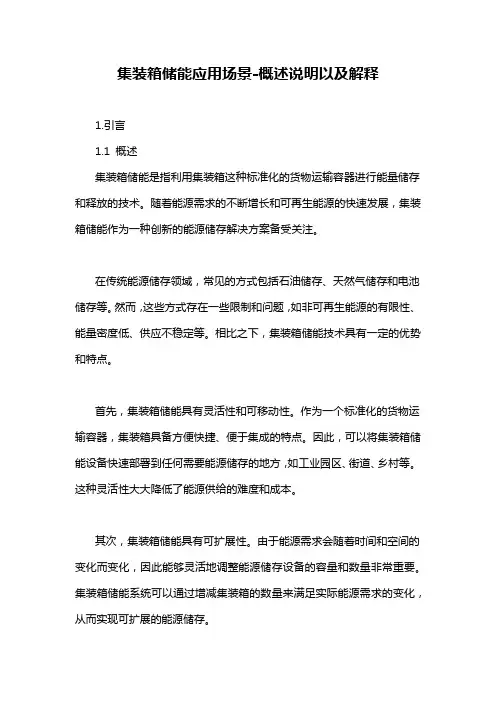 集装箱储能应用场景-概述说明以及解释1.引言1.1 概述集装箱储能是指利用集装箱这种标准化的货物运输容器进行能量储存和释放的技术。