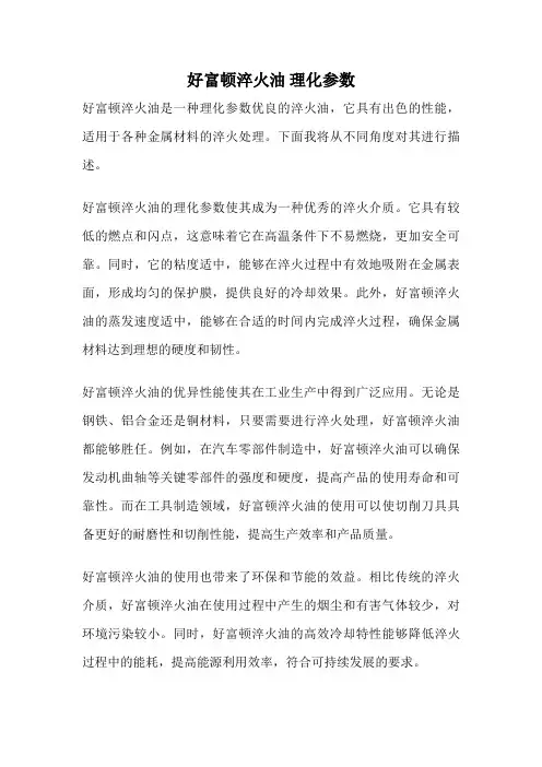 三、淬火油的选择选择合适的淬火油对于淬火效果和金属材料的使用寿命至关重要。