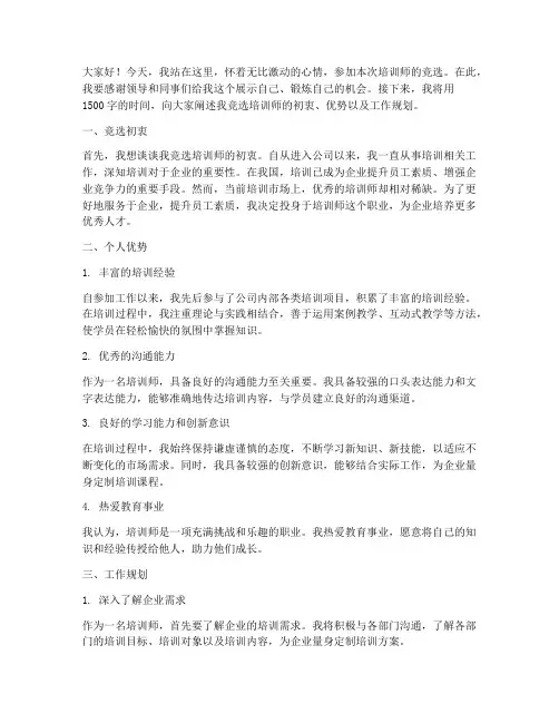 一、竞选初衷首先,我想谈谈我竞选培训师的初衷。