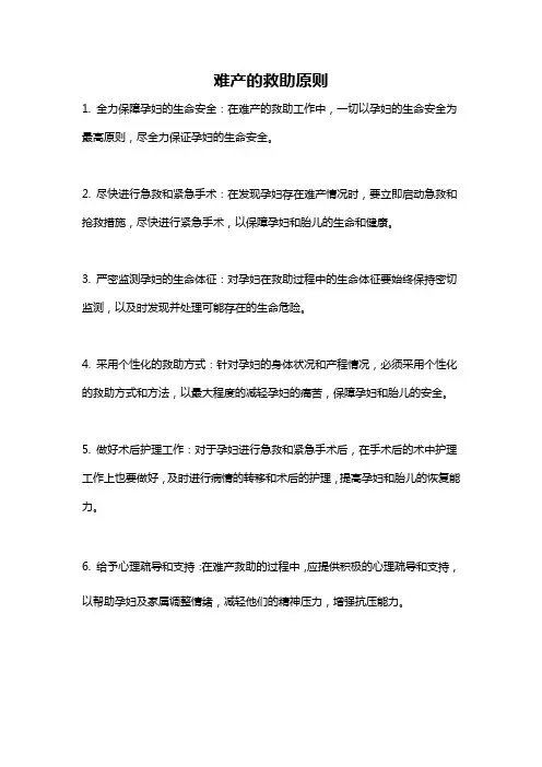 难产救助原则是指在分娩过程中遇到困难或并发症时,医务人员应该采取的救助措施和原则。