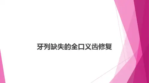 )一、定义(一)牙列缺失:又称无牙颌(edentulous-jaw),指整个牙弓上不存留任何天然牙或牙根。