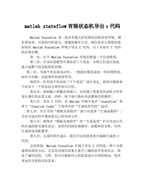 matlab stateflow有限状态机导出c代码