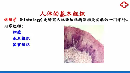 一、人体的基本组织人体由多种不同类型的细胞组成,这些细胞按照形态和功能的不同分为四种基本组织:上皮组织、结缔组织、肌肉组织和神经组织。