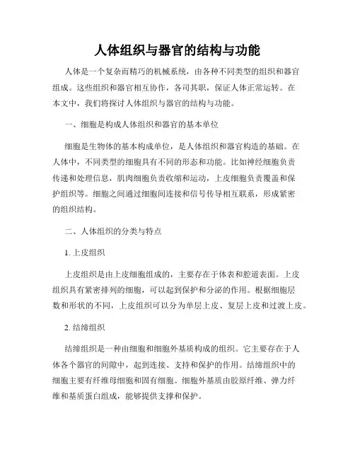 人体四种基本组织特点和功能人体是一个复杂的生物体系,由不同的器官和组织构成。