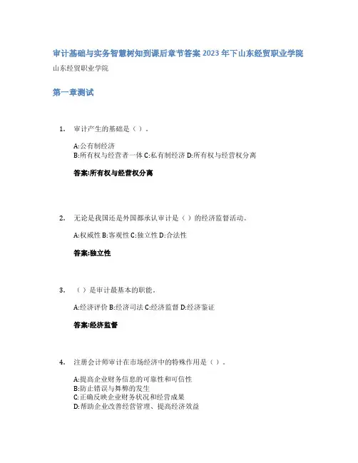 审计基础与实务智慧树知到课后章节答案2023年下山东经贸职业学院山东经贸职业学院第一章测试1.审计产生的基础是()。