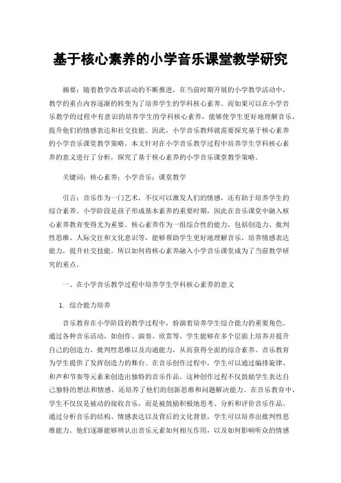 2. 正文2.1 核心素养在音乐教学中的应用核心素养是指一种综合性的能力,包括认知能力、情感态度、社会责任等方面。