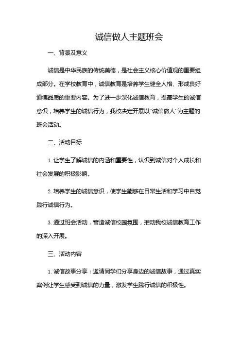 《诚信在我身边》主题班会稿高二《诚信在我身边》主题班会稿高二「篇一」班会背景:诚信是一个人的立人之本,是人最重要的品质之一。