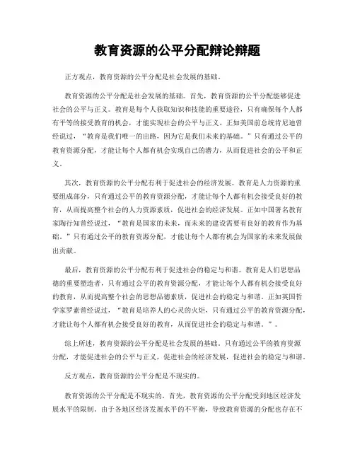 教育资源的公平分配辩论辩题正方观点,教育资源的公平分配是社会发展的基础。