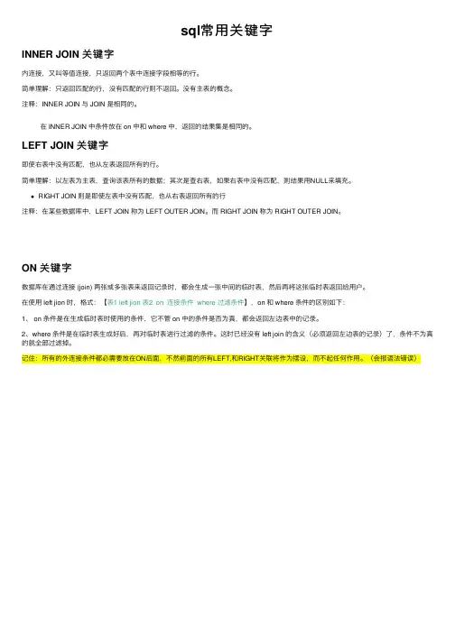 在SQL语句中,有许多常用的关键字用于实现对数据库的操作和查询。
