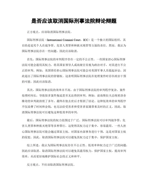 是否应该废除国际刑事法庭辩论辩题正方观点,国际刑事法庭应该废除。