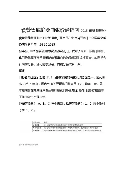 食管胃底静脉曲张诊治指南2015 最新「肝硬化食管胃静脉曲张出血防治指南」要点日在北京召开的「中华医学会感染病学分月年24 10 2015会年会、中华医学会肝病学分会年会」上,发布了最新一版的「肝硬,化门静脉高压食管胃静脉曲张出血的防治指南」该指南由中华医学会肝病学分会、消化病学分会、内镜分会联合出台。