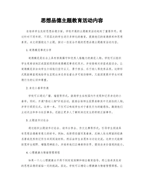 4. 设计多样化的德育活动德育的过程需要通过丰富多样的活动来实现。