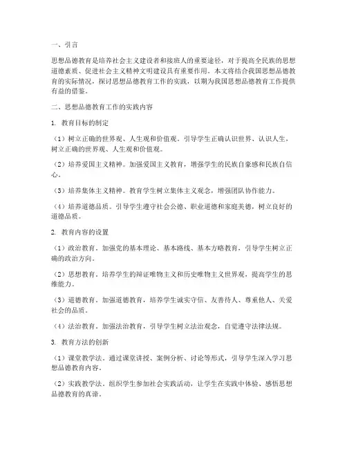 一、引言思想品德教育是培养社会主义建设者和接班人的重要途径,对于提高全民族的思想道德素质、促进社会主义精神文明建设具有重要作用。