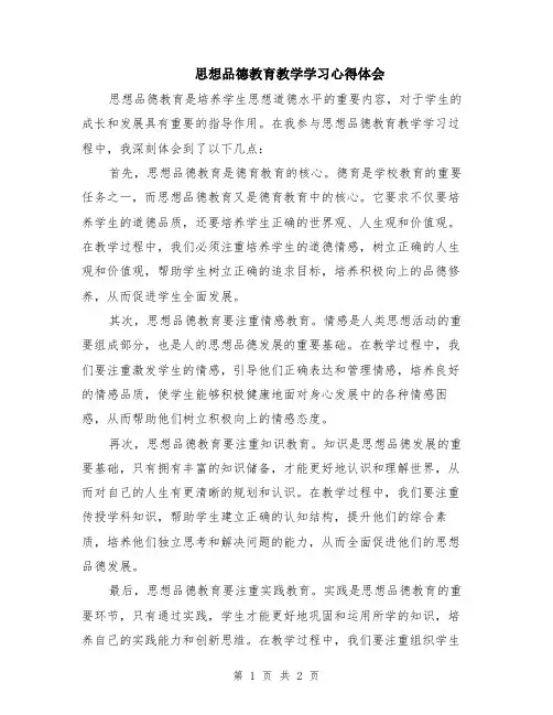 一、思想品德教育的重要性思想品德教育是培养学生健全人格的基石。