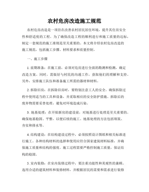 本文将介绍农村危房改造的施工规范,包括施工步骤、材料要求和质量控制。