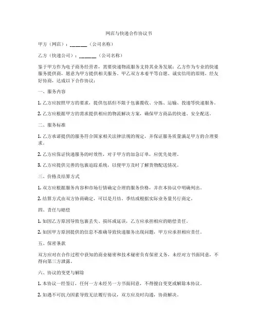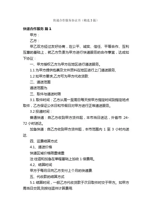 三、履行方式、期限、违约责任3.1 甲方和乙方必须根据本协议约定进行快递服务的履行。