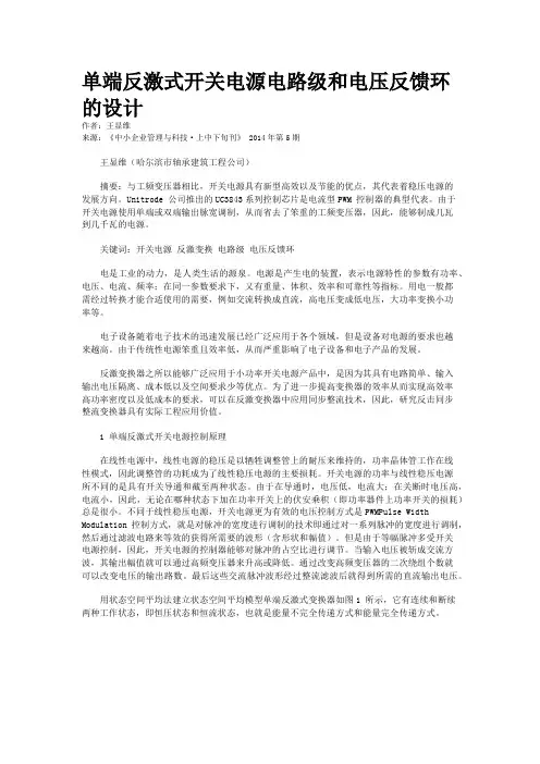 1. 反激电路的基本原理反激电路是一种采用变压器的电路,用于将直流电源转换为交流电源。