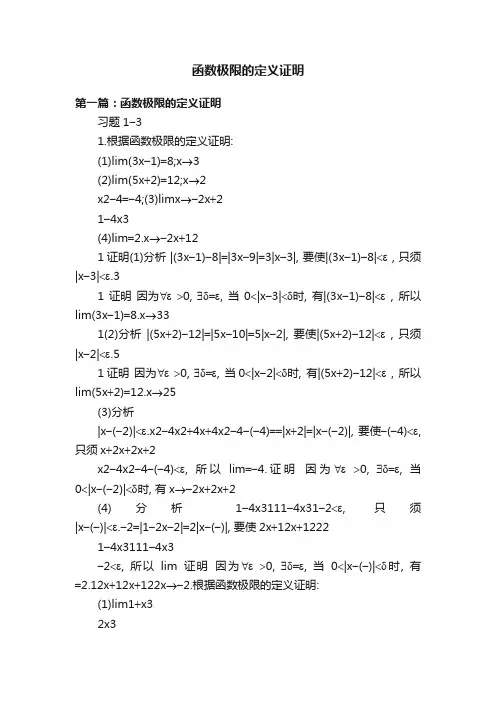 函数极限的证明是数学分析中一个重要的内容,它能够让我们更好地理解函数的性质和特征。