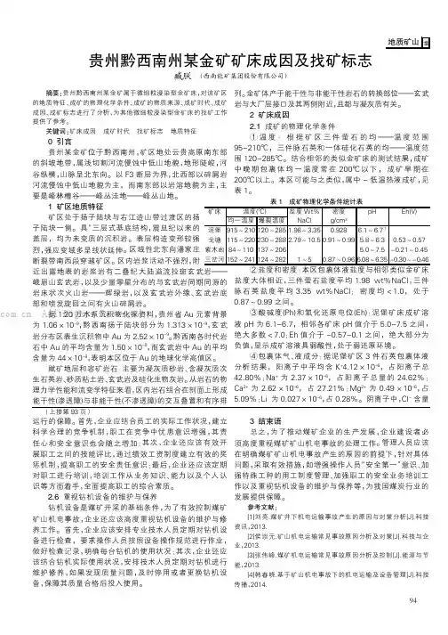 关键词:矿床成因成矿时代找矿标志地质特征0引言贵州某金矿位于黔西南州,矿区地处云贵高原南东部的斜坡地带,属浅切割河流侵蚀中低山地貌,地形陡峻,河谷纵横,山脉呈北东向。