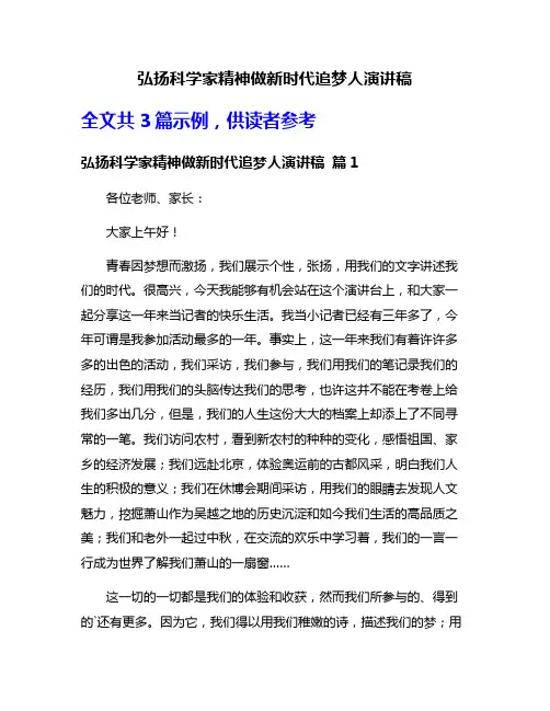 做新时代的追梦人演讲稿范文(精选19篇)做新时代的追梦人篇1敬的老师、家长们,亲爱的同学们:你们好!今天我演讲的题目是《我有一个梦想》。