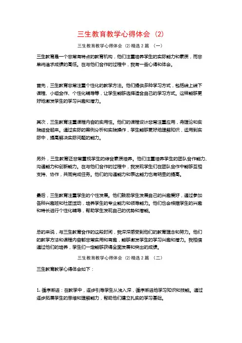 2. 教学措施为了成功实施三生教育,学校应采取以下措施:(a)设置多元化的课程:包括思想教育、体育锻炼、艺术欣赏等多个方面的内容。