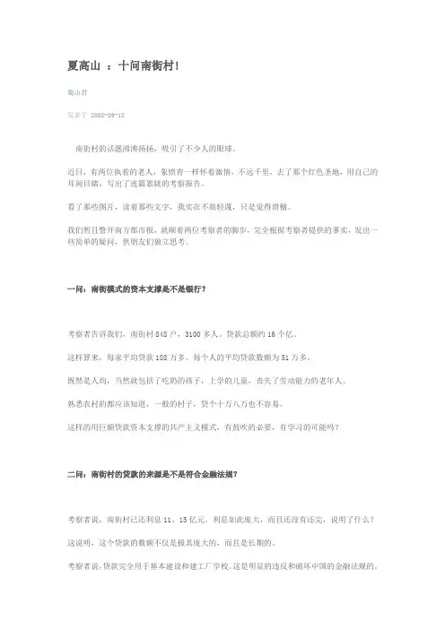 夏高山:十问南街村!蜀山君发表于 2008-09-18南街村的话题沸沸扬扬,吸引了不少人的眼球。