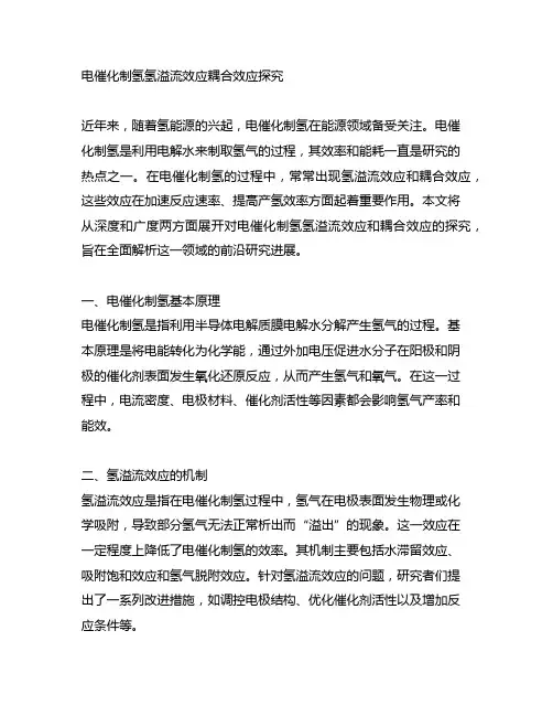 二、氢溢流效应的机制氢溢流效应是指在电催化制氢过程中,氢气在电极表面发生物理或化学吸附,导致部分氢气无法正常析出而“溢出”的现象。