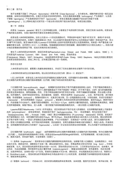 第⼗⼆章 孢⼦⾍ 孢⼦⾍⾪属于顶复门(Phylum Apicomplex)的孢⼦纲(Class Sporozoa)。