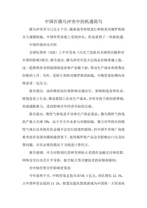 中国在俄乌冲突中的机遇简写俄乌冲突至今已近5个月。