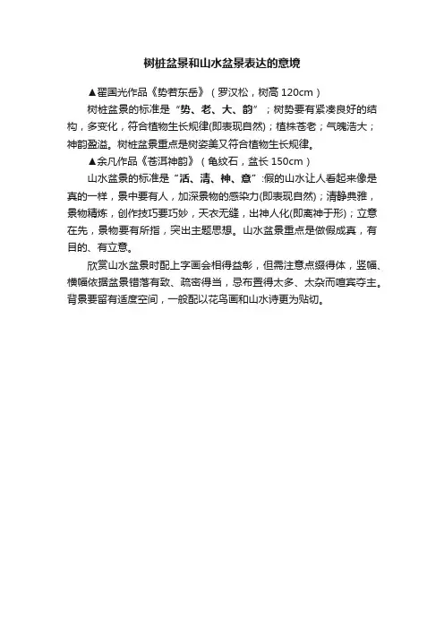 (二)山水盆景从整体上看,主要表现为咫尺之盎,盆立大千。