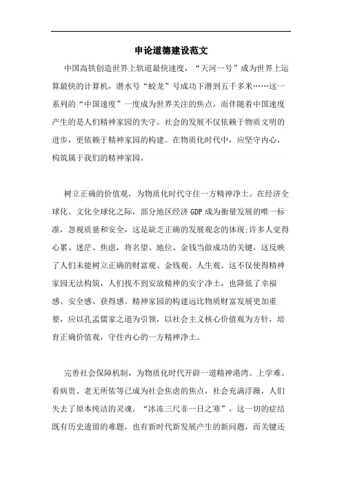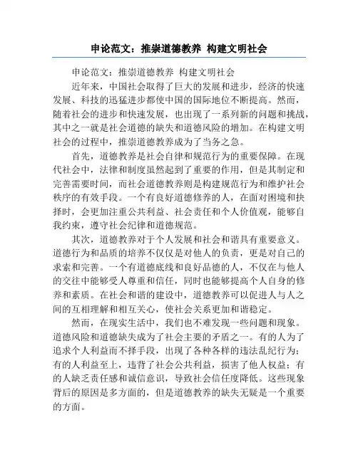 2023国家公务员考试申论范文:推崇道德教养构建文明社会2023国家公务员考试申论范文:推崇道德教养构建文明社会近年来,随着社会的发展和变革,人们对于文明社会的建设提出了更高的要求。