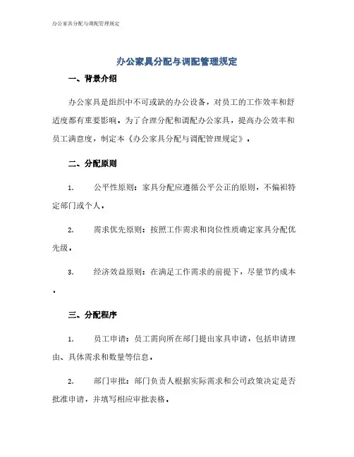 第二章家具配置与分配第四条家具配置应结合公司实际工作需要,充分考虑工作效率、员工舒适度和办公空间布局。