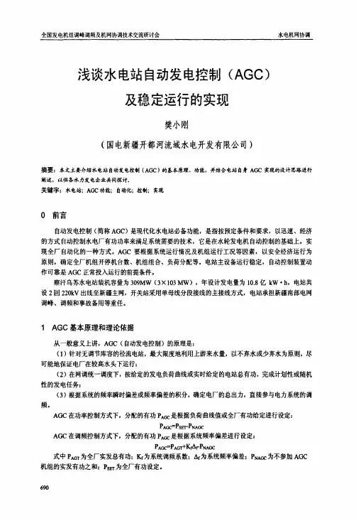 中国南方电网自动发电控制(AGC)运行管理规定1 范围本规定确定了南方电网自动发电控制(以下简称AGC)运行管理的基本原则和要求。